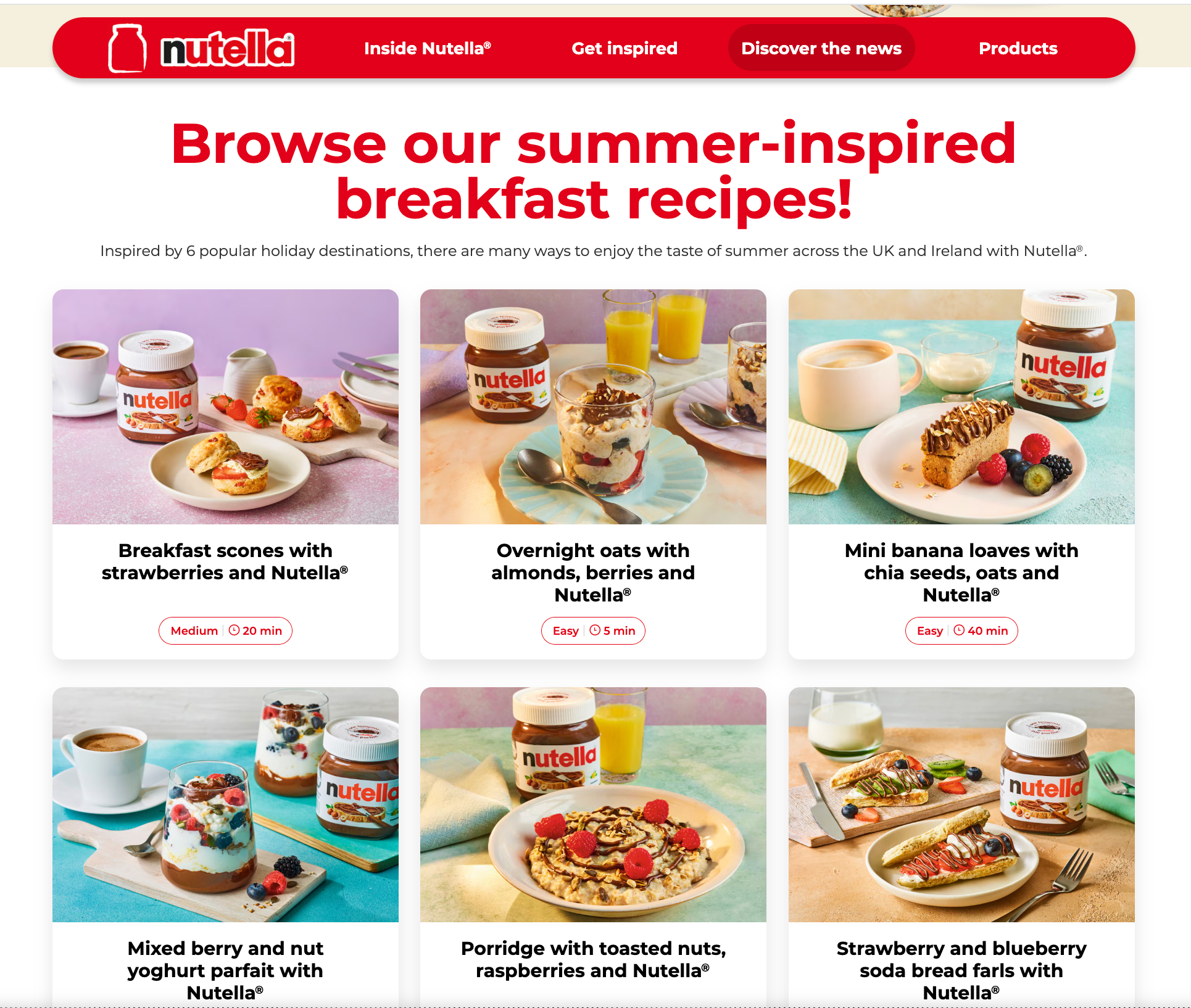 I began with a review of Nutella’s past performance and seasonal category behaviour. This identified the need to connect Nutella with both breakfast occasions and the activities families enjoy in summer. We created location-inspired recipes that were quick, easy to prepare, and perfect for sharing, pairing each recipe with a suggested morning activity. For example, a hearty breakfast was paired with a Scottish Highlands hike to create a full morning experience rather than simply a recipe idea.